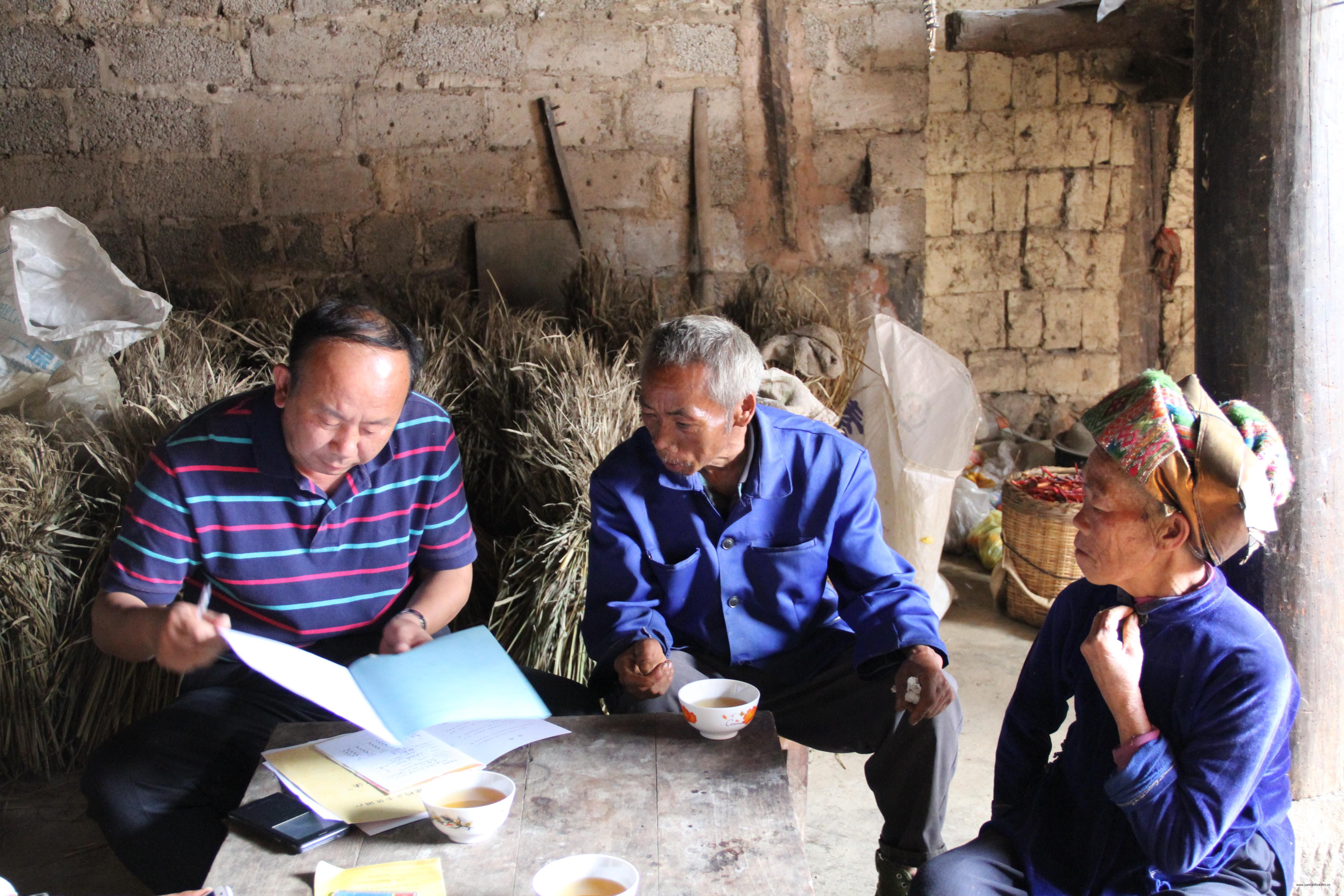 在村干部及厅驻村工作队的指引下,大家分头开展了转走访工作。张院长、吴书记等深入结对帮扶的龙成山、张廷秀、杨绍东等22户贫困户开展入户调查,查看了帮扶对象的居住条件、生产生活环境、牲畜存栏等情况,认真填写了访谈问卷,并做好走访记录。仔细听取了帮扶对象对扶贫政策的意见和今后家庭发展的想法,主动询问了访谈过程中有疑虑的地方,细致分析了各贫困户的致贫原因,共商增收致富策略,签订了帮扶协议,并垫付了短期帮扶资金。