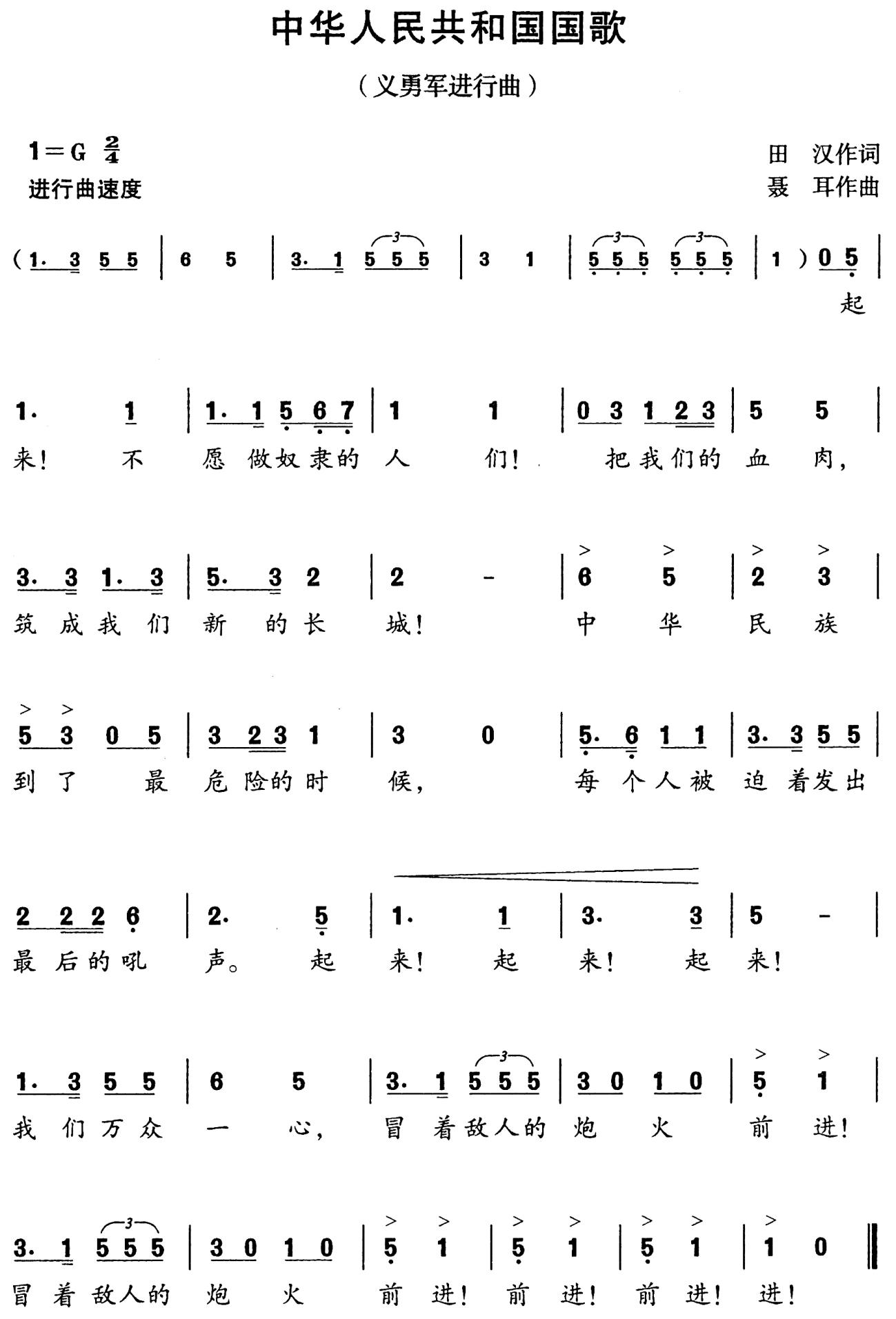 附件:中华人民共和国国歌(五线谱版、简谱版)