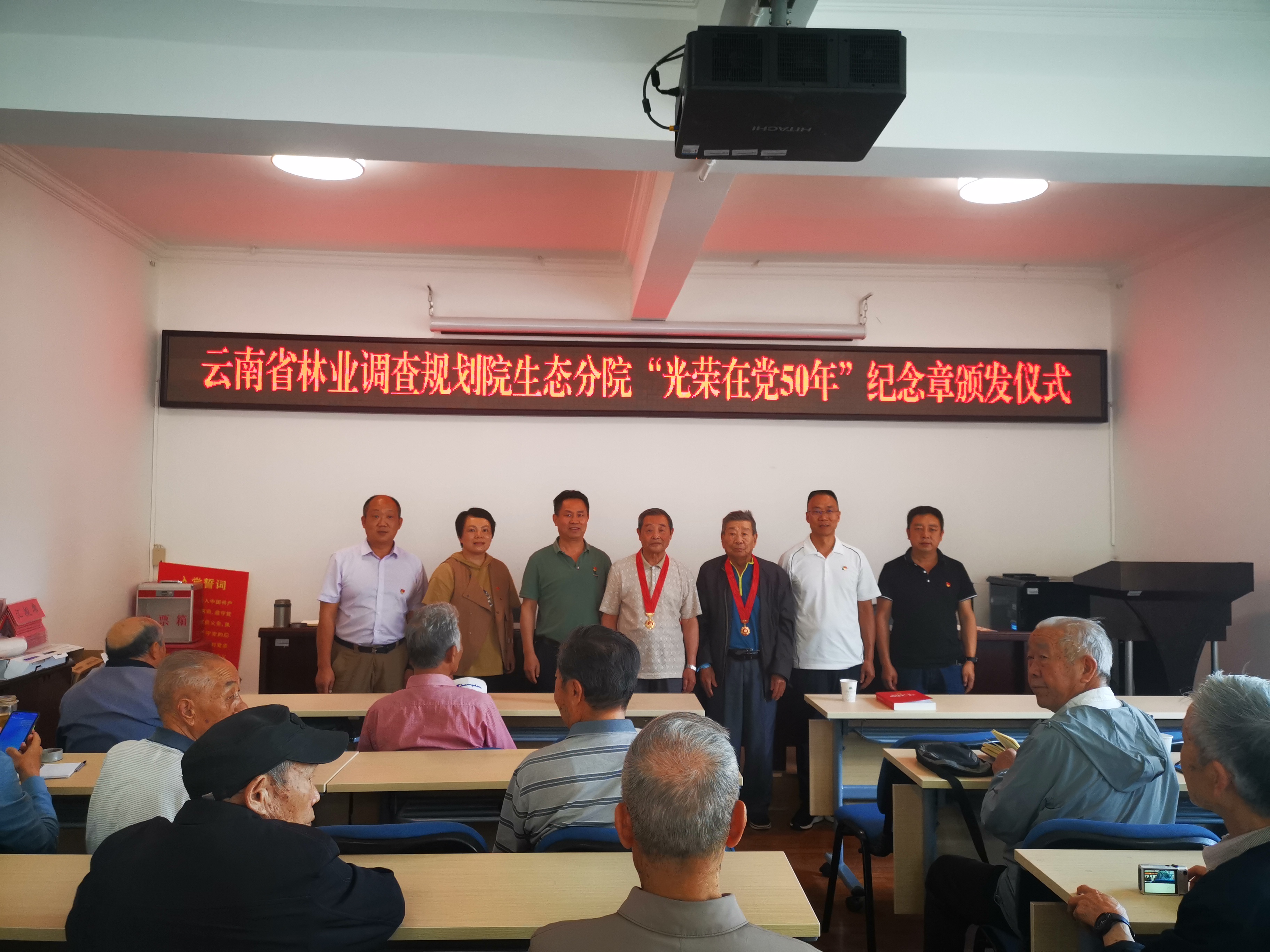 专题活动首先为“光荣在党50年”的两位老党员颁发纪念章,送上祝福,并号召广大党员干部要从“纪念章”的荣光里体悟出敬业和实干,年轻党员要继承老一辈共产党员的光荣传统和优良作风,坚定信念,凝聚力量,始终保持革命者的大无畏奋斗精神,激发越是艰难越是向前的斗争精神。
