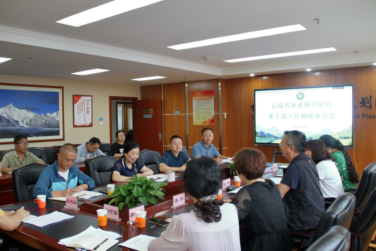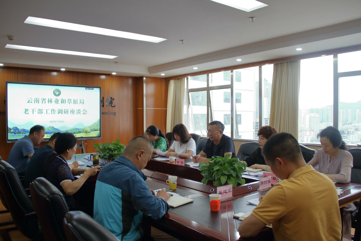 7月19日上午,省林业和草原局离退办主任铁伟一行到我院开展老干部工作调研,院党委书记吴霞、副院长邓永红及营林分院、院离退办、院办工作人员参加了座谈会。