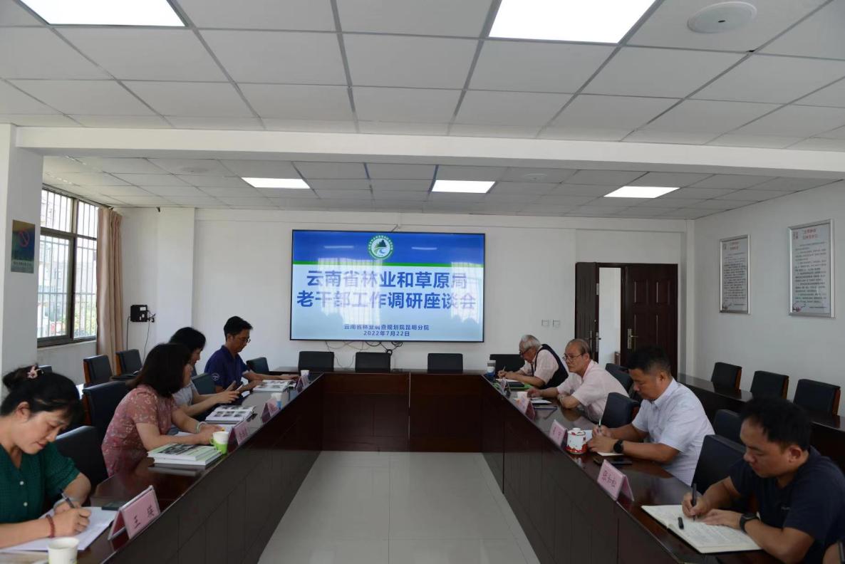 近日,省林业和草原局离退办调研组一行到昆明分院开展老干部工作调研,分院在昆班子成员、办公室和离退休服务管理人员参加了座谈会。