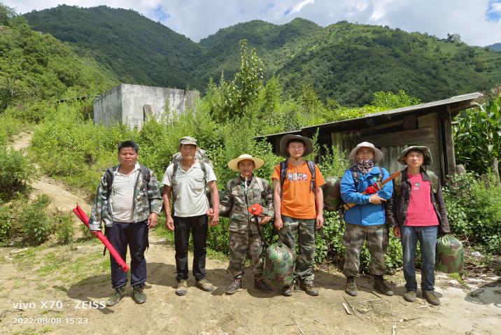 8月7日上午,向分院领导作了调查计划请示汇报并得到同意后,积极与泸水市林草局对接,并请他们联系林业站,帮忙聘请四名当地向导。在和向导取得联系沟通交换意见后,晚上我们召开了小组会议,研究样地情况,路线安排和生活物资购买等问题,明确职责分工,做好入山前的各项准备工作。