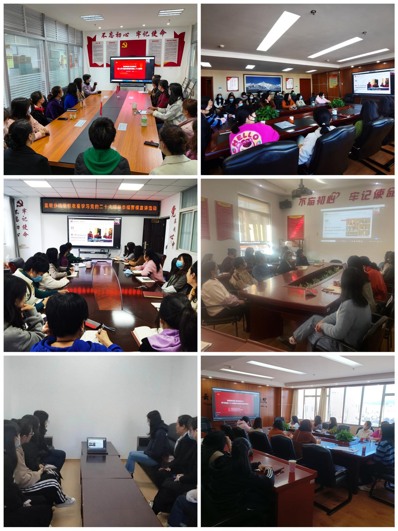2022年12月1日,院工会和妇工委组织院部和分院共五个片区的女职工,以视频方式集中收看了云南省总工会组织的“学习党的二十大精神巾帼劳模宣讲会”。