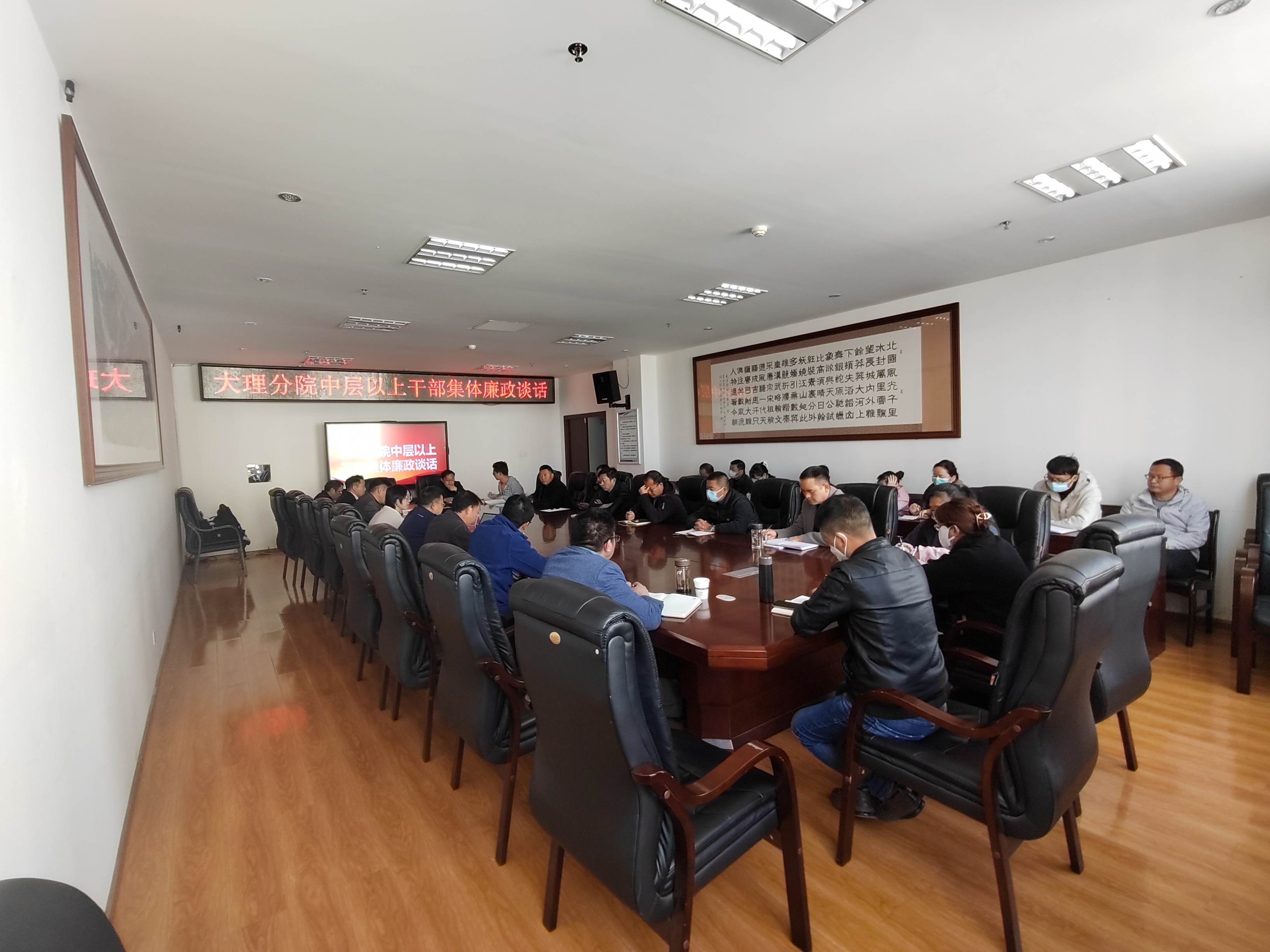 2月21日,院领导到大理分院开展2023年中层以上干部集体廉政谈话,会议由分院党委书记主持,分院领导、全体中层干部参加。