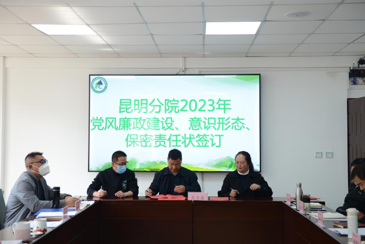 会议还听取了《昆明分院2022年度预算执行和2023年度预算安排情况的报告》,开展了干部职工集体廉政谈话,对分院2023年精神文明建设工作进行了安排部署,并进行了2023年责任书的签订。