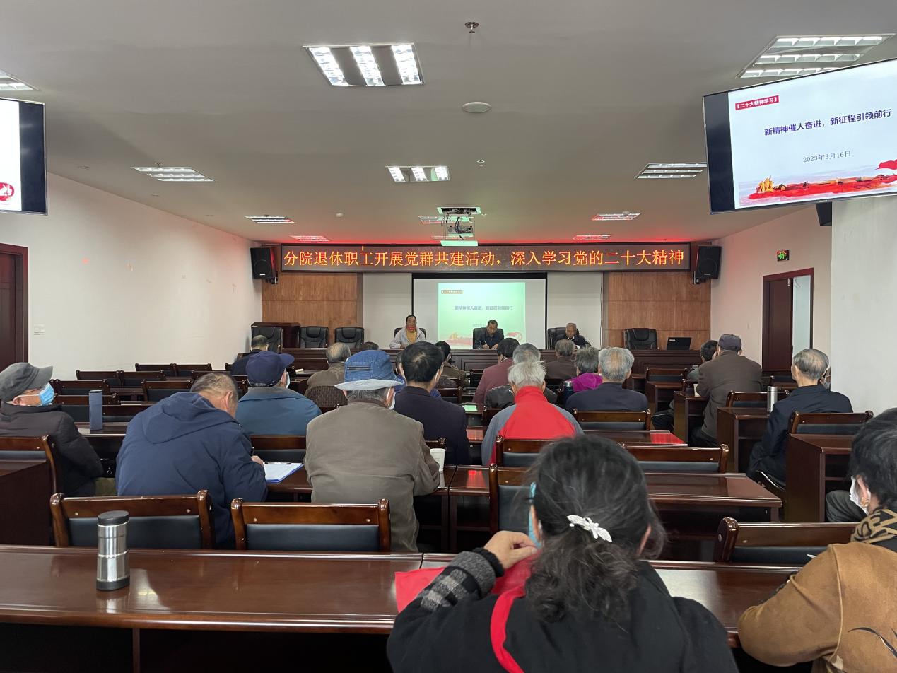 会上,分院党委书记以《新精神催人奋进,新征程引领前行》为题讲授了党课。退休老干部们学习欲望强烈,将焕发出的政治热情转化到踊跃的交流讨论中,抒发了永远跟党走、离岗不离志的壮美情怀。