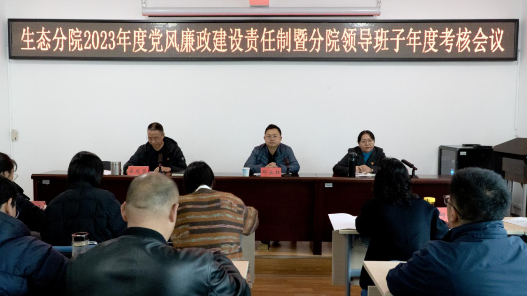 按照院党委统一安排,2024年1月11日上午,生态分院召开2023年度党风廉政建设责任制考核暨分院领导班子年度考核会议,会议由分院主要领导主持,院第三考核组到会监督指导。