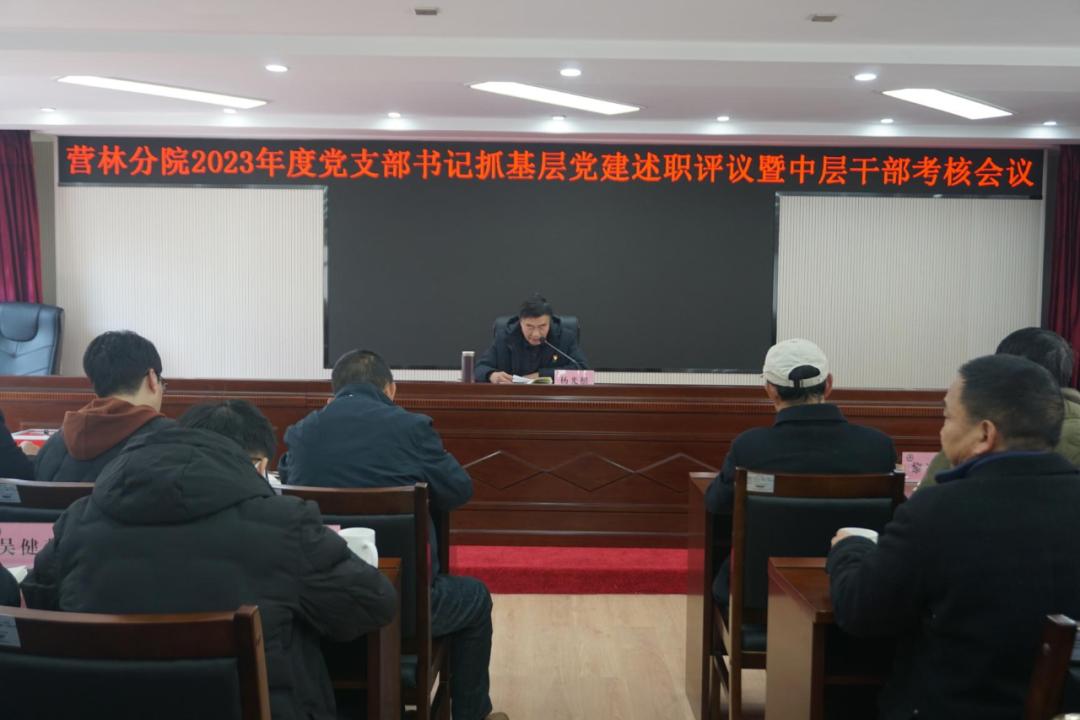 2024年1月12日,营林分院召开2023年度党支部书记抓基层党建述职评议考核暨中层干部年度考核会议,会议由分院主要领导主持,全体干部职工参会。
