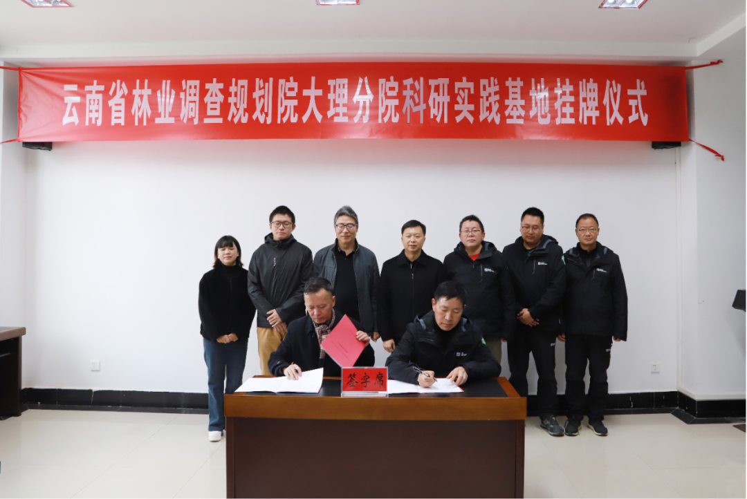 签约后,南涧县人民政府副县长周国祥和分院主要领导共同为云南省林业调查规划院大理分院科技创新实践基地揭牌。