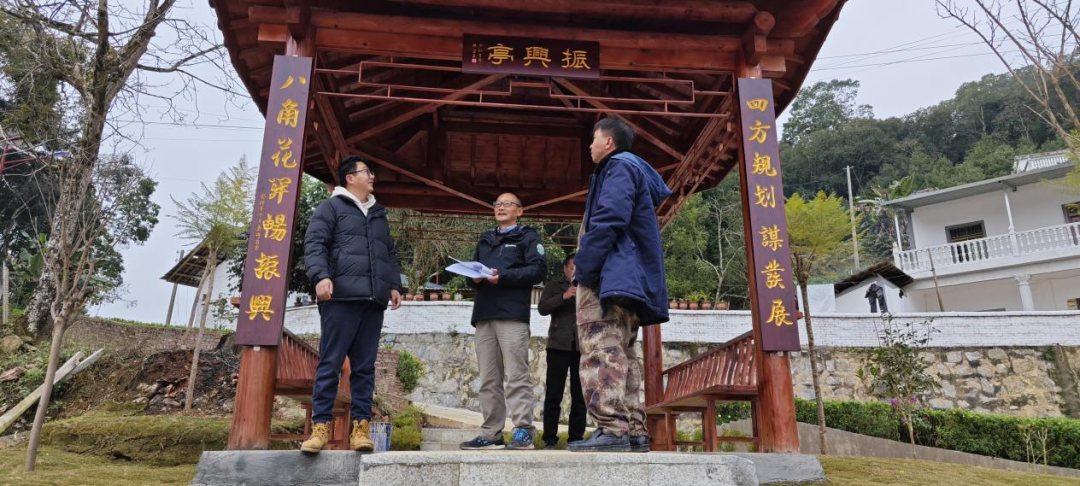 近日,坡脚村民小组口袋公园建成,为营造乡村文化氛围,大理分院书画兴趣小组主动作为,为村民休闲活动亭取名“振兴亭”,并撰写楹联“四方规划谋发展,八角花开畅振兴”,为坡脚村注入优秀传统文化元素,提升绿美乡村建设成效。
