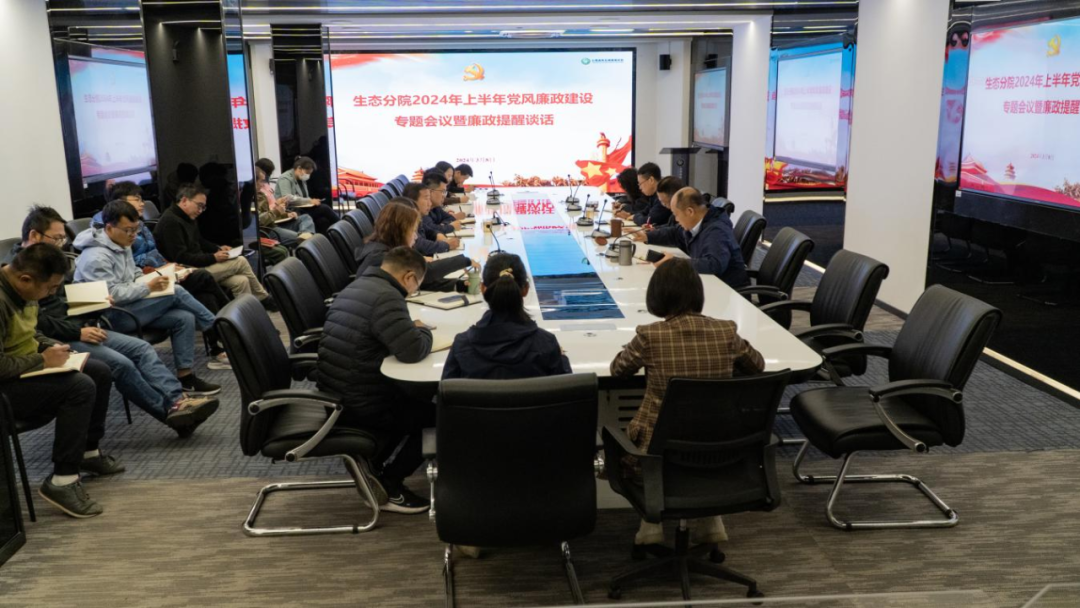 为深入学习贯彻党的二十大精神,落实全面从严治党和党风廉政建设工作要求,2024年3月8日上午,生态分院召开2024年上半年党风廉政建设暨廉政提醒谈话专题会。分院领导、中层干部参加会议。