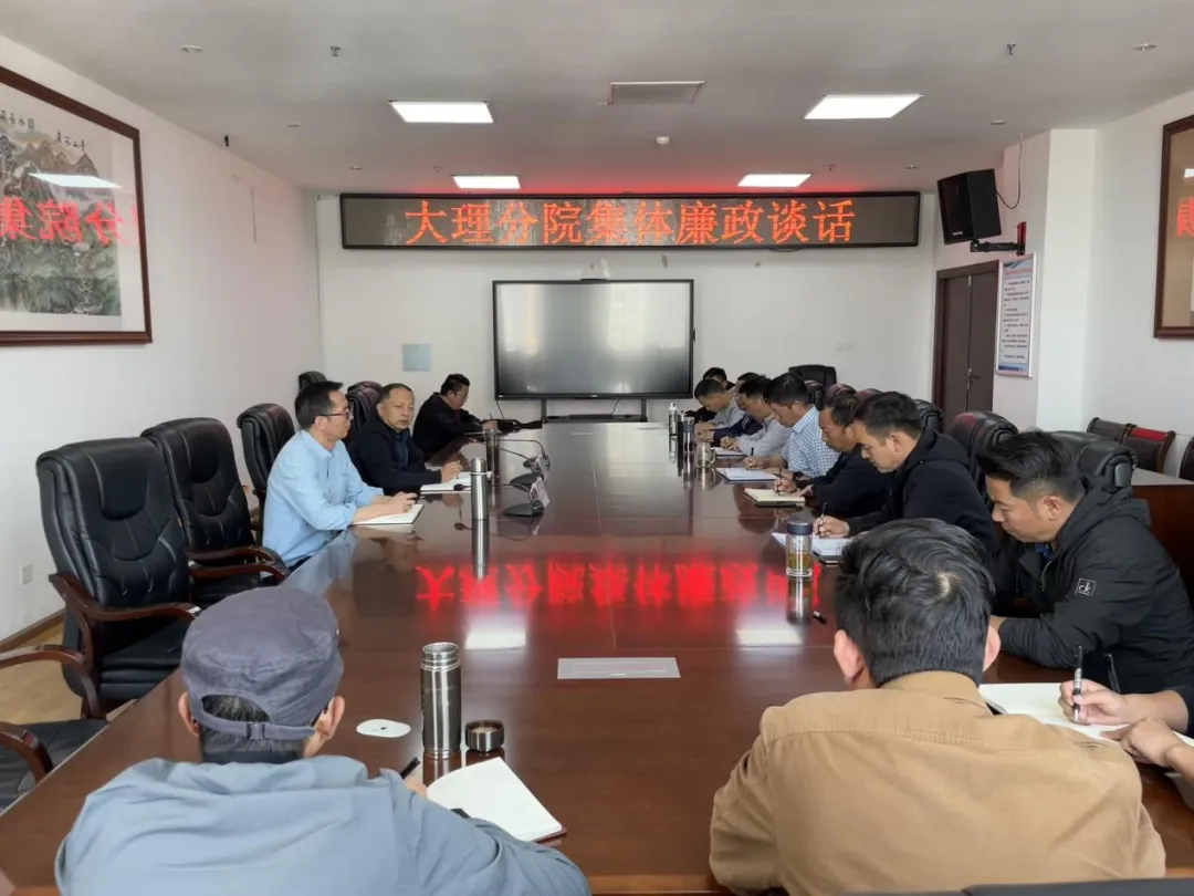 2024年4月26日,院全面从严治党第五指导组到大理分院开展党纪学习教育督导及廉政提醒谈话。分院在家领导班子成员、中层干部参加会议。