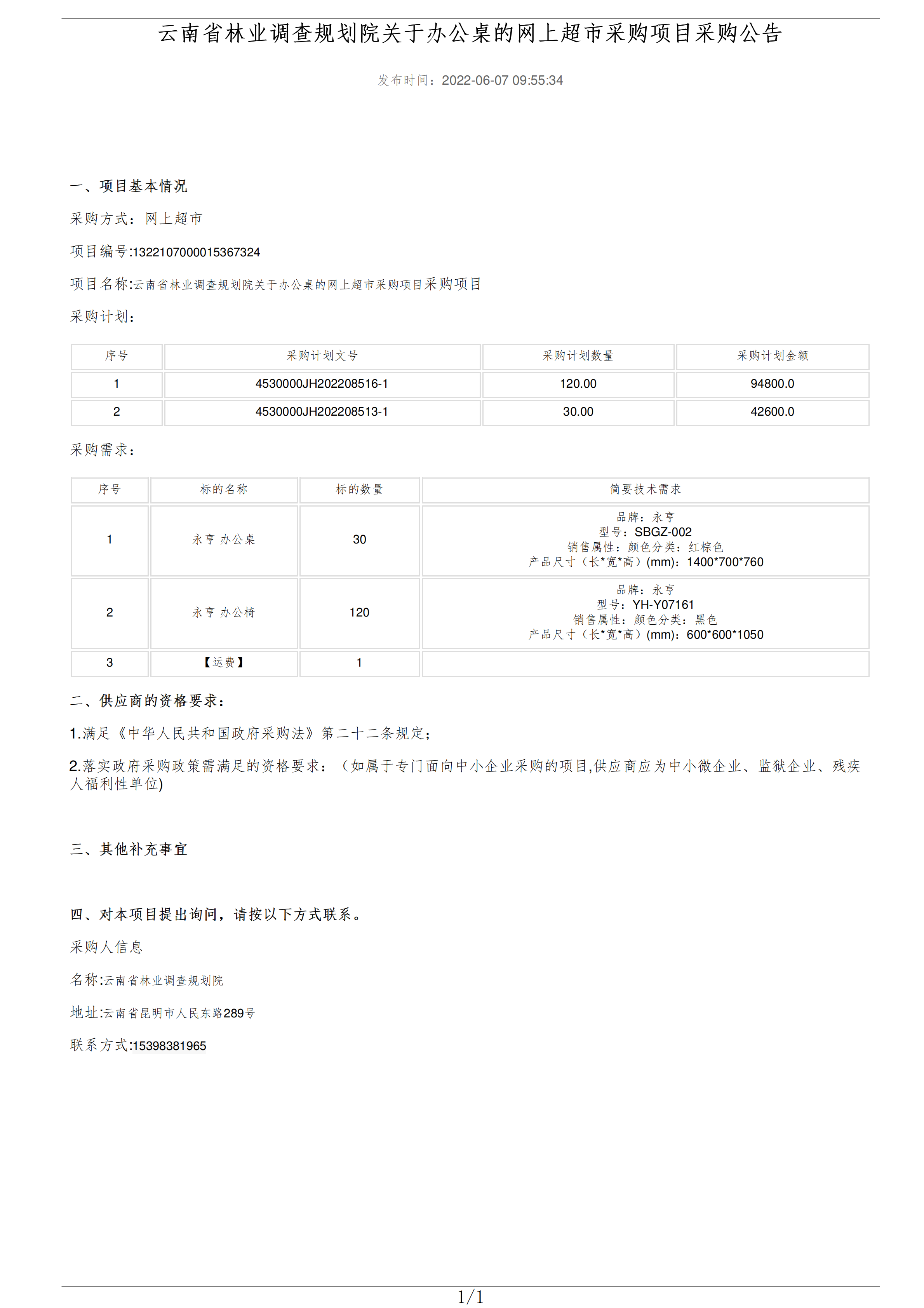 云南省林业调查规划院关于办公桌的网上超市采购项目采购公告