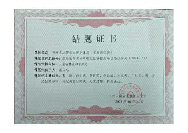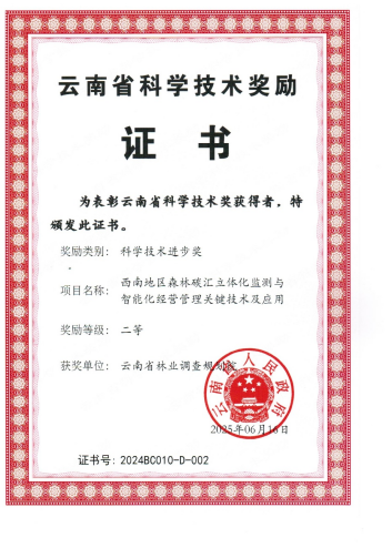 完成《建设云南省林草碳汇数据信息平台路径研究》等科研课题申报和研究。《以科技创新为引领,筑牢森林碳汇产业根基》咨询报告获省委书记、省长肯定性批示,为全省“双碳”战略安排提供重要决策支持。取得发明专利4项,软件著作权14项,出版碳汇领域专著5部,发表高质量论文22篇。参与《西南地区森林碳汇立体化监测与智能化经营管理关键技术及应用》研究,获省政府科学技术进步奖二等奖。参与第二届普洱亚太林业论坛、中国林业学术大会、云南省生态学会等学术会议交流论坛。