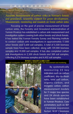 研建云南省云南松等11个乔木树种(组)碳计量体系。起草碳计量云南省地方标准23项,已发布《立木生物量模型及碳计量参数一西南桦》等5项。